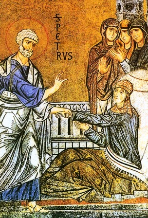 Η Αγία Ταβιθά ήταν ευσεβής και φιλάνθρωπη χριστιανή και κατοικούσε στην Ιόππη. Το Ταβιθά είναι λέξη Συριακή και σημαίνει Δόρκα. Ήταν υφάντρα και έφτιαχνε χιτώνες, τους οποίους πωλούσε προς ανακούφιση των χηρών και ορφανών. Η Ταβιθά όμως αρρώστησε και πέθανε. Τήν περίοδο εκείνη βρισκόταν στη Λύδδα ο Απόστολος Πέτρος. Όταν το άκουσαν αυτό οι δικοί της, έσπευσαν να τον παρακαλέσουν νά έρθει στην Ιόππη, όπου και οδηγήθηκε στο νεκροκρέβατο της Ταβιθάς. Αφού παρακάλεσε τους παραβρισκόμενους να βγουν από το δωμάτιο, ο Πέτρος γονάτισε και προσευχήθηκε. Στη συνέχεια είπε στην Ταβιθά να σηκωθεί. Μόλις εκφώνησε το πρόσταγμα η νεκρή ανεστήθη. Το γεγονός αυτό διαδοθεί στην Ιόππη και πολλοί πίστεψαν. Η Αγία Ταβιθά πέθανε σε βαθύ γήρας.